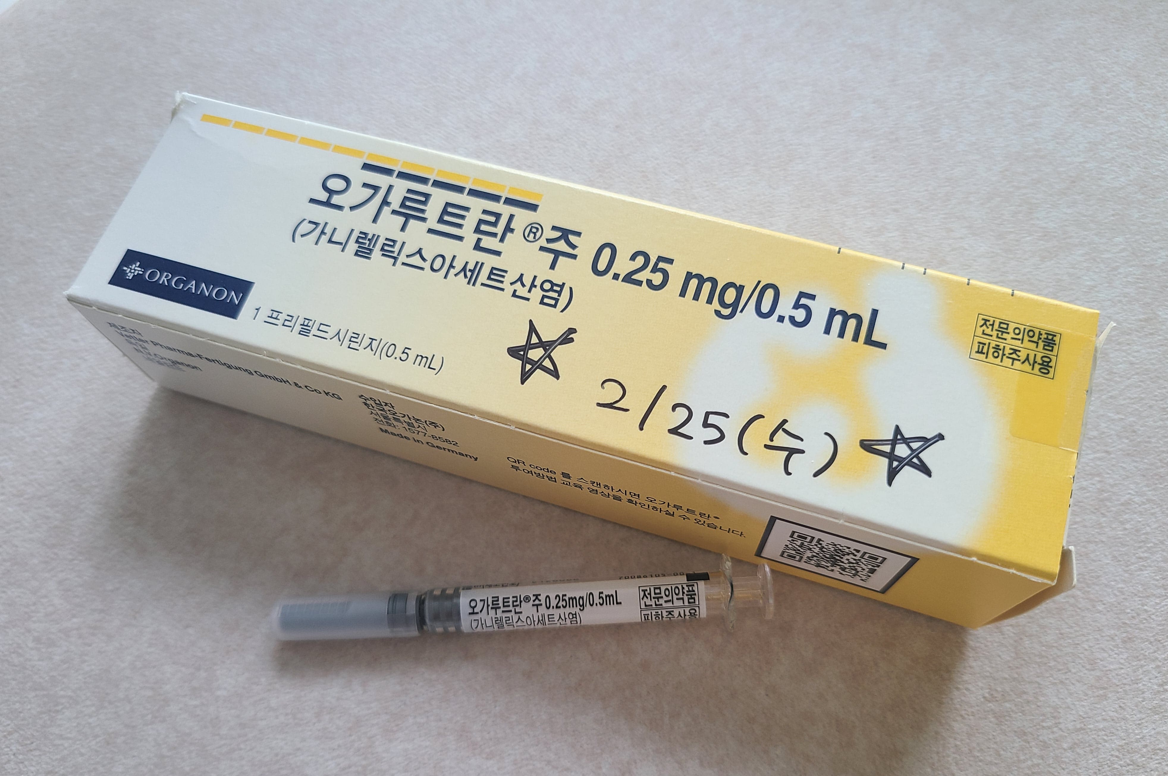 월요일 오전 병원에 전화를 했다. 두통약이나 소화제 먹어도 되냐고 물어봤는데.. 주사 부작용인 거 같다고 병원에 내원하라고 안내해 주셨다. 퇴근하는 길에 병원에 들렀다. 고날-에프 펜 300(단위를 모르겠다. ml인가?) 4개와 오가루트란 주 2개 처방받았다.